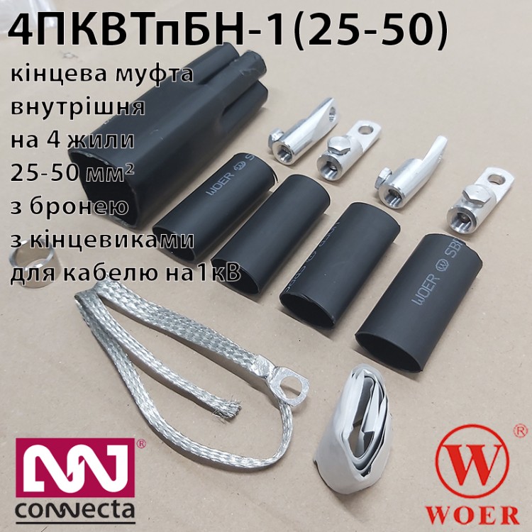 Кінцева термоусаджувальна муфта до 1кВ для броньованого кабеля до 1кВ 4ПКВТпБН-1 (25-50) з кінцевиками