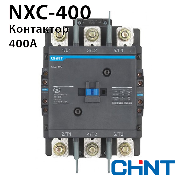 Характеристики Контактор CHINT NXC-400 400A AC/DC 220В-240V/АС3 2НО+2НЗ 50Гц