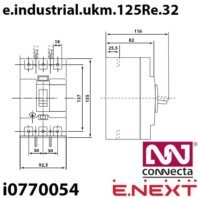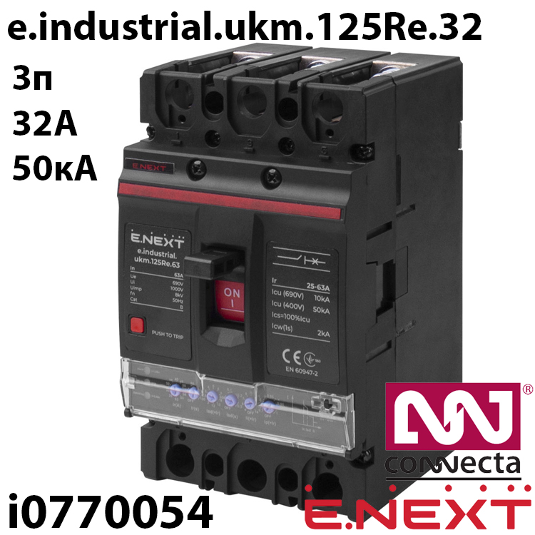 Характеристики Силовий автоматичний вимикач E.NEXT e.industrial.ukm.125Re.32 з електронним розчіплювачем 32А 3Р