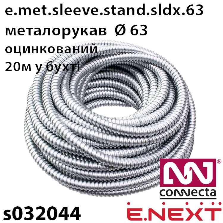 Характеристики Металорукав ENEXT e.met.sleeve.stand.sldx.63 оцинкований, сухий (20м)