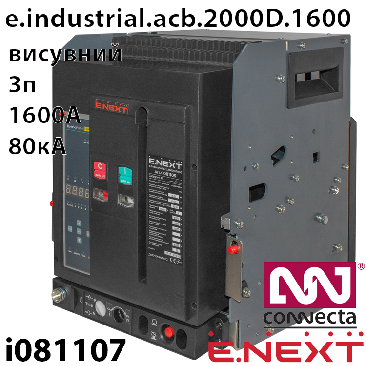 Характеристики Повітряний автоматичний вимикач e.industrial.acb.2000D1600, викатний, 0,4кВ, 3Р, електронний розчіплювач, мотор-привід та РН