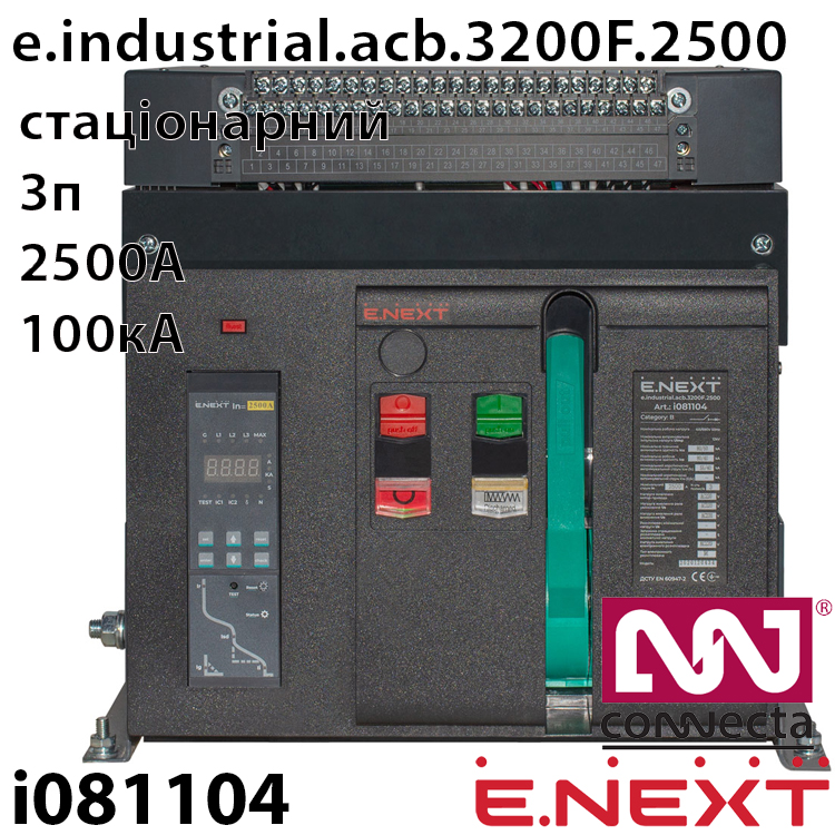 Повітряний автоматичний вимикач E.NEXT e.industrial.acb.3200F.2500, стаціонарний, 0,4кВ, 3Р, електронний розчіплювач, мотор-привід та РН