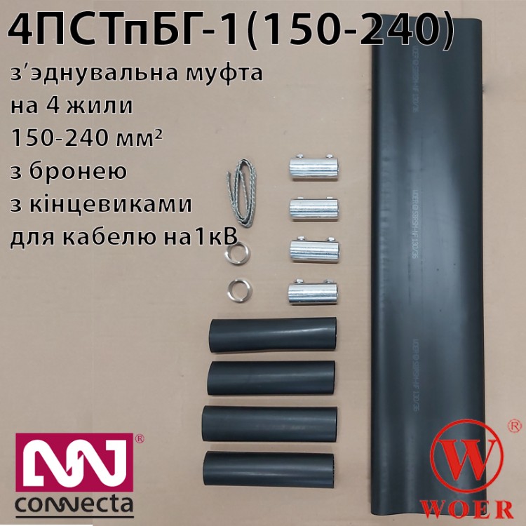 Муфта з'єднувальна термоусаджувальна для броньованого кабеля 4ПСТпБГ-1 (150-240) з гільзами