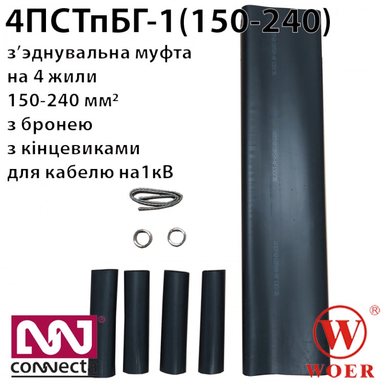 З'єднувальна термоусаджувальна муфта до 1кВ для броньованого кабеля з пластмасовою ізоляцією 4 ПСТпБ-1 (150-240) без гільз